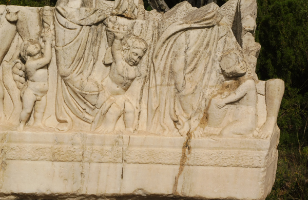 Le temps d’admirer ce superbe bas-relief d’une tombe romaine dans les jardins du musée, je pénètre enfin dans le bâtiment principal qui abrite les collections archéologiques.