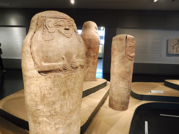 Et ça commence fort avec ces extraordinaires sarcophages debout en argile, trouvés dans le cimetière de Deir-ei-Balah, au sud de Gaza, qui datent de la période cananéenne, aux environs du XIIe siècle avant J.-C. On ne peut rester qu’admiratif devant tant de beauté, tant d’originalité, ces corps stylisés et marqués du sceau du symbolisme.