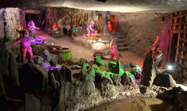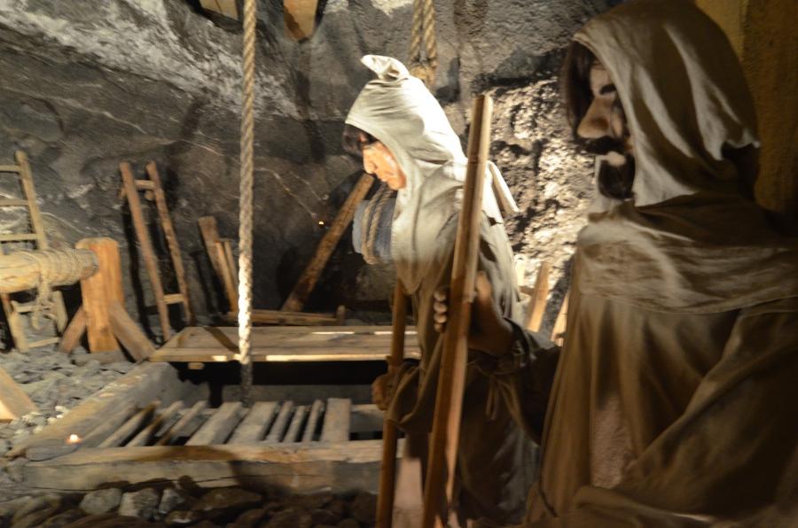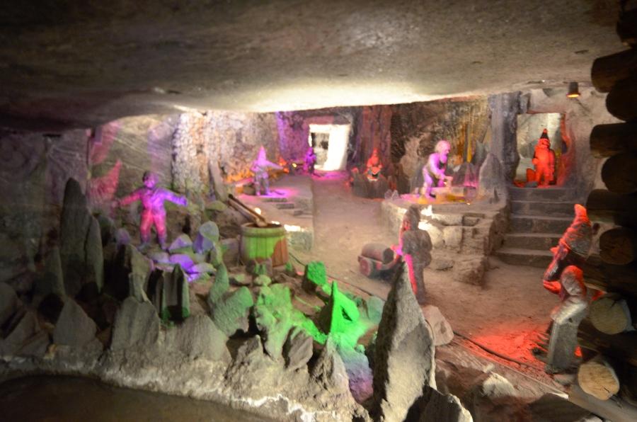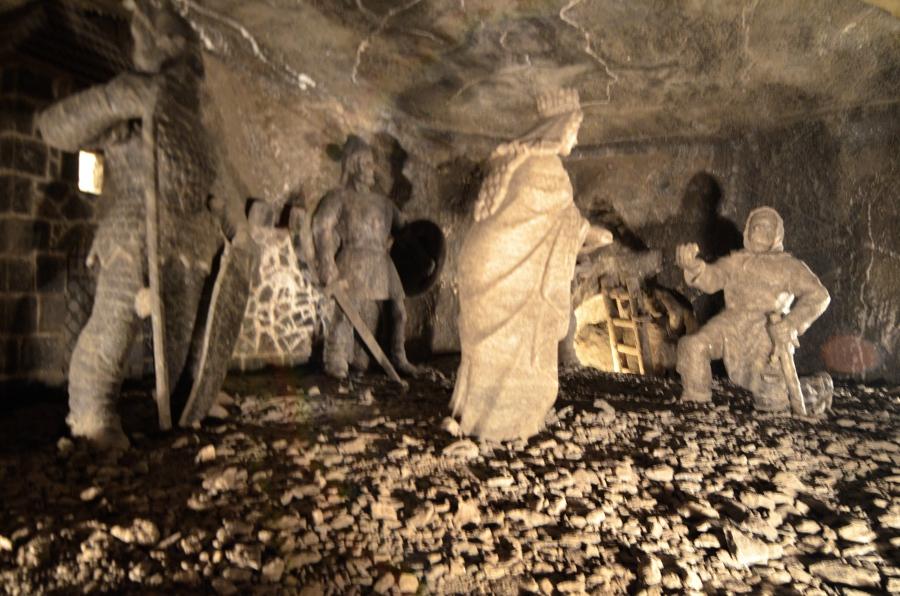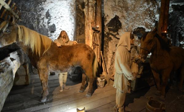 On passe ainsi tour à tour de la salle Copernic, aux premiers hommes réfugiés dans les grottes de Wieliczka, en passant par les brûleurs de méthane, la grotte aux nains, l’évocation du travail des chevaux, les poulies, les treuils, la salle Staszic convertie en usine d’armement allemande pendant la guerre et les fameuses chapelles décorées de statues taillées à la main.