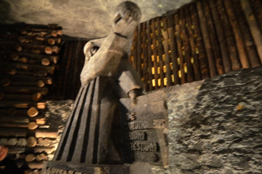 À force d’aller de salle en salle, on finit par déboucher sur le clou de la visite : l’immense chapelle dédiée à la reine Kinga (1224-1292). Chapelle, c’est peu dire. On pourrait parler ici de cathédrale ! D’ailleurs, une statue géante du pape polonais Jean-Paul II se dresse à l’entrée.